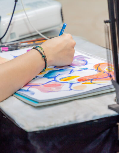 Ces images, créées sur place accompagnaient la parole des intervenant·es et du public en donnant une traduction visuelle sensible aux enjeux de prévention, de soin et de représentation autour du cancer du sein.