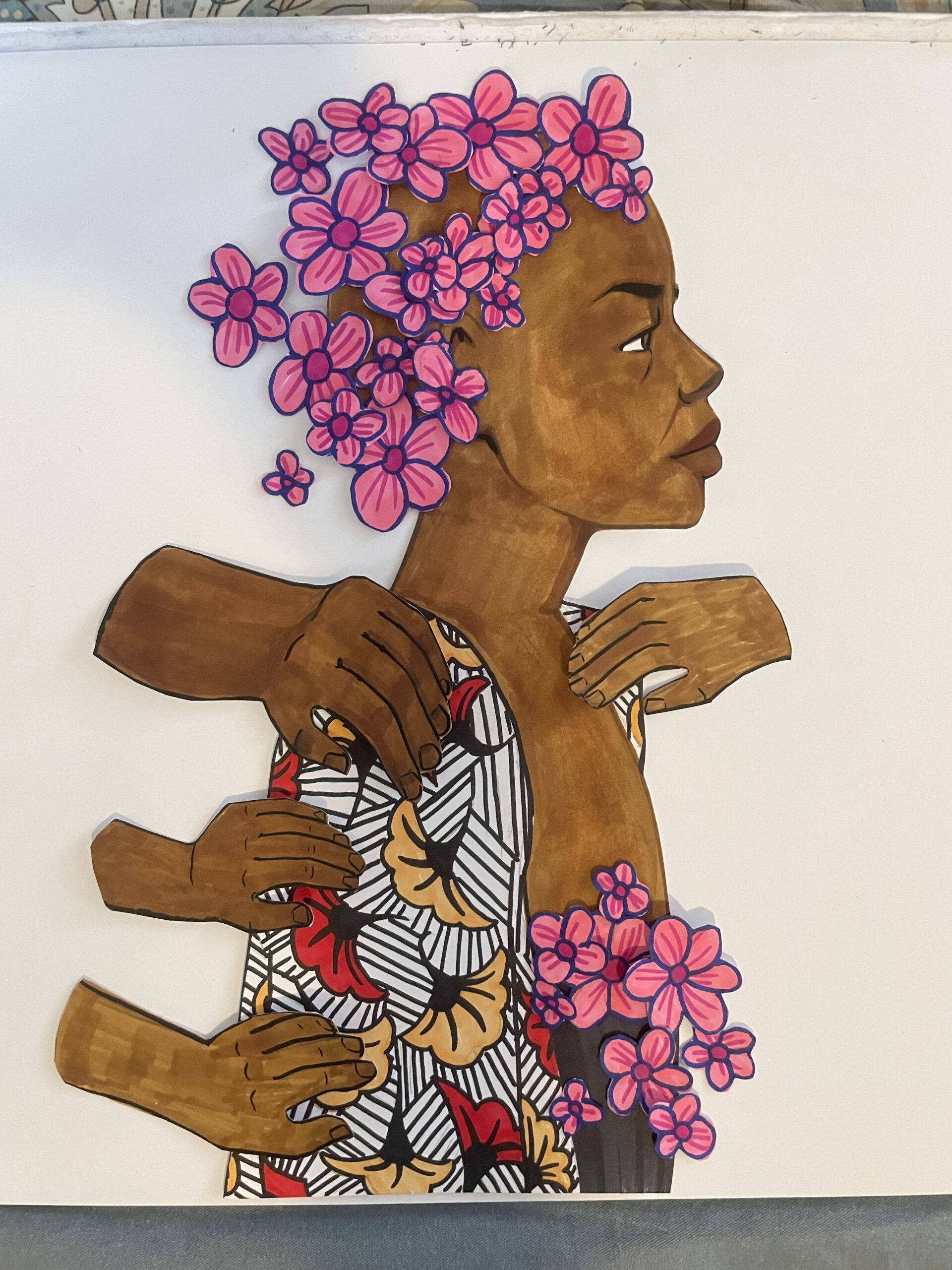 Lors d’une journée de sensibilisation au cancer du sein à l’Université d’Abomey-Calavi (Bénin) et du lancement du concours d'art oratoire Mon Sein en 180 secondes, j’ai réalisé une performance de dessin en direct.