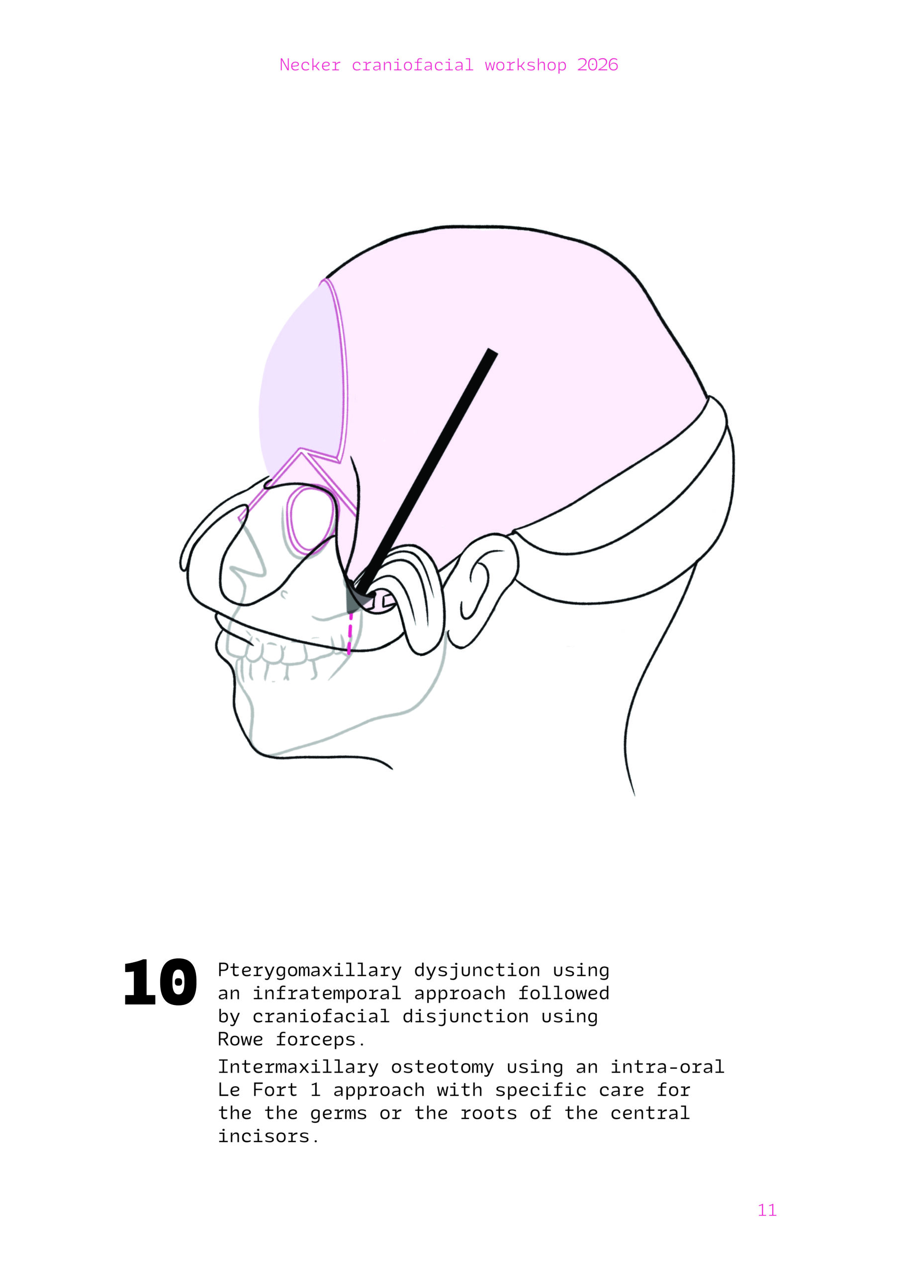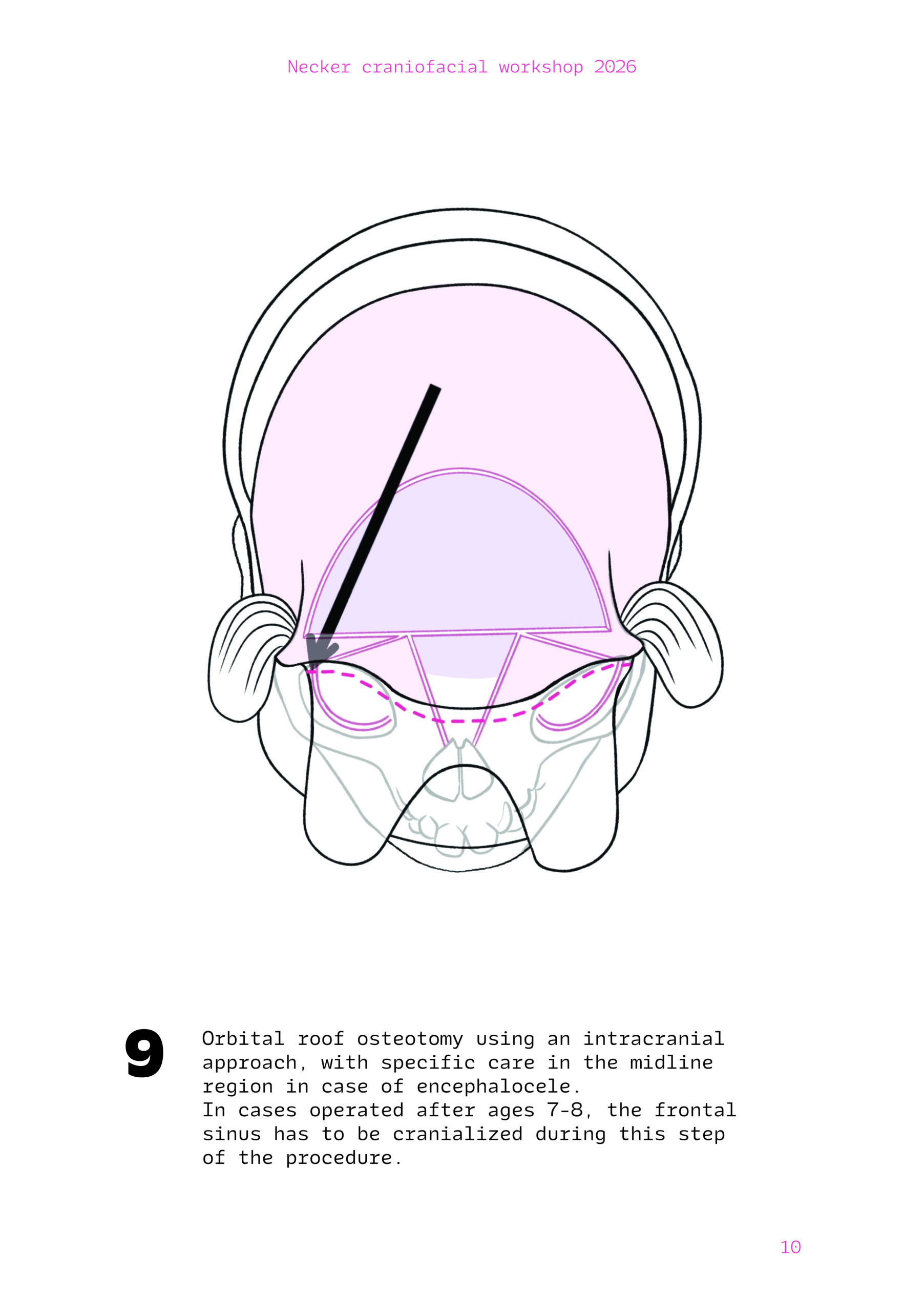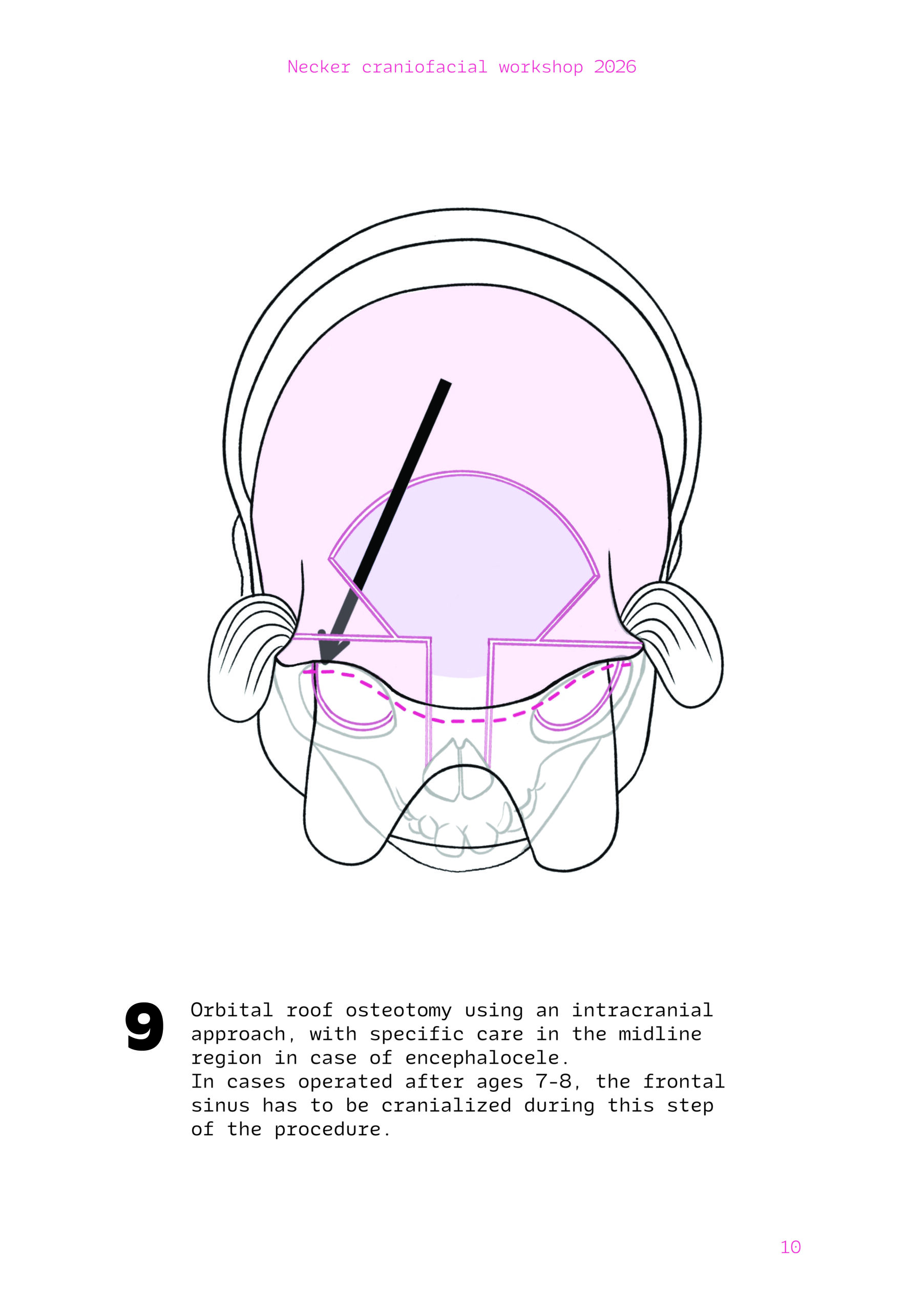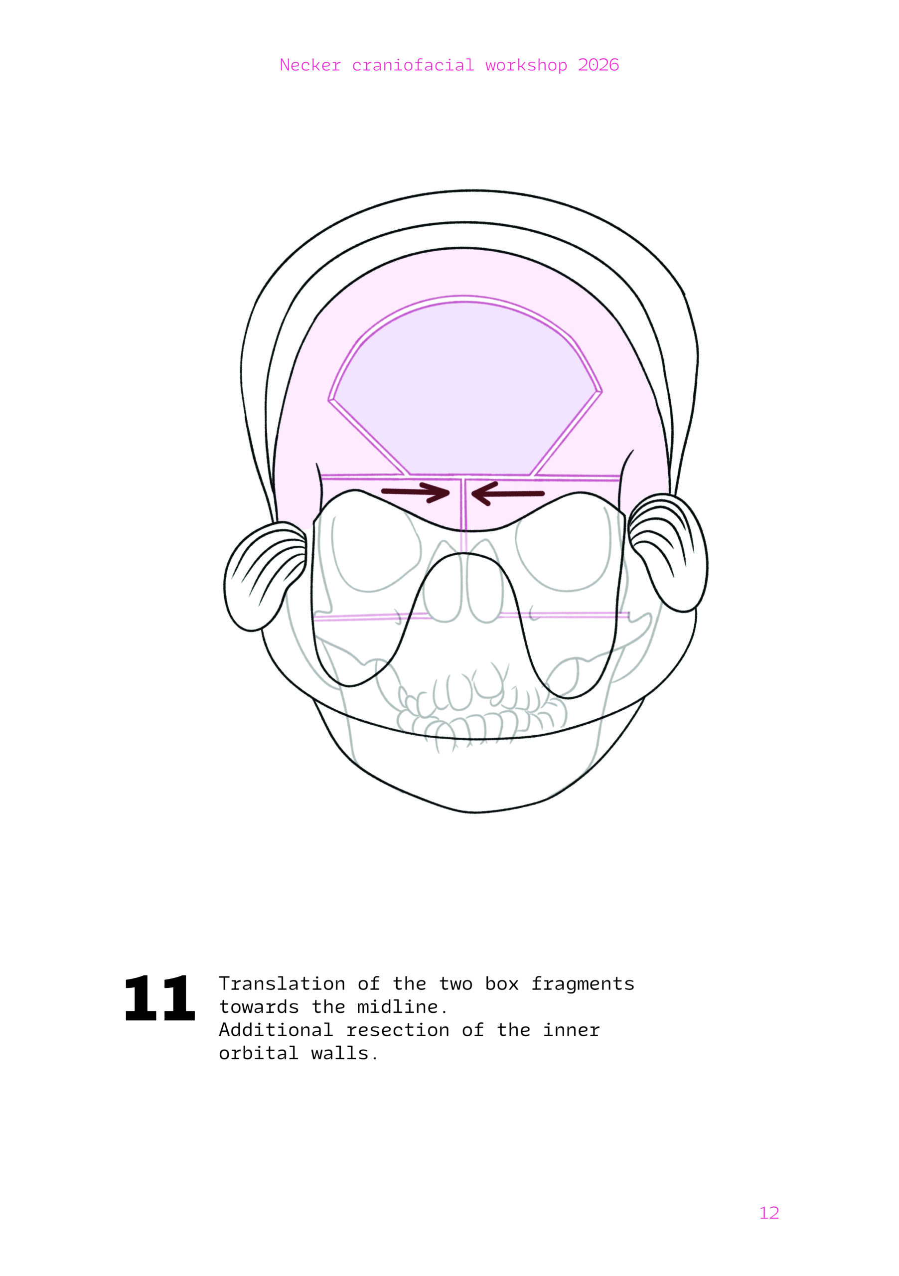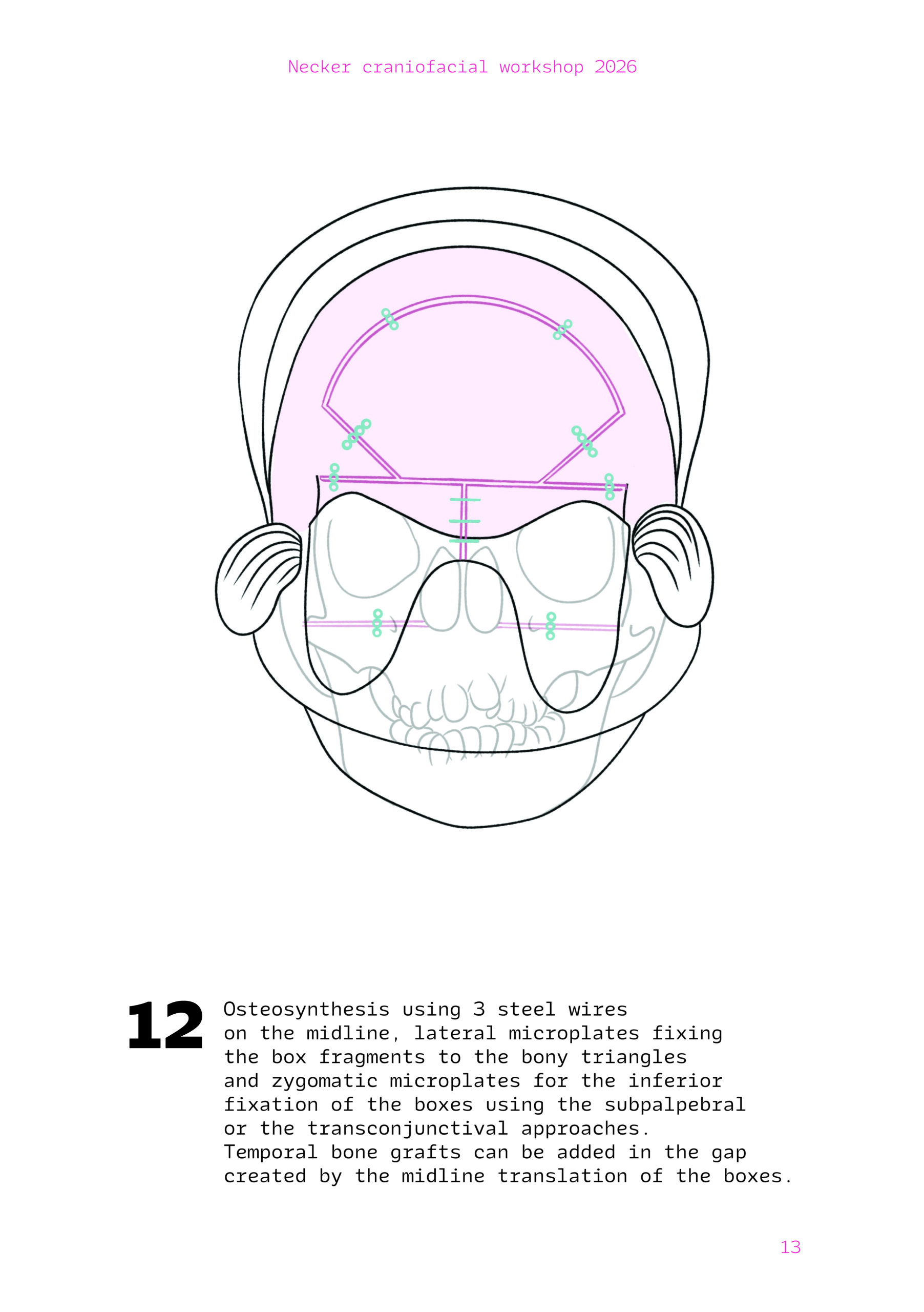 Dans un langage visuel clair et schématique, chaque séquence opératoire est décomposée pour faciliter la lecture des ostéotomies, des mobilisations osseuses et des corrections orbitales.
