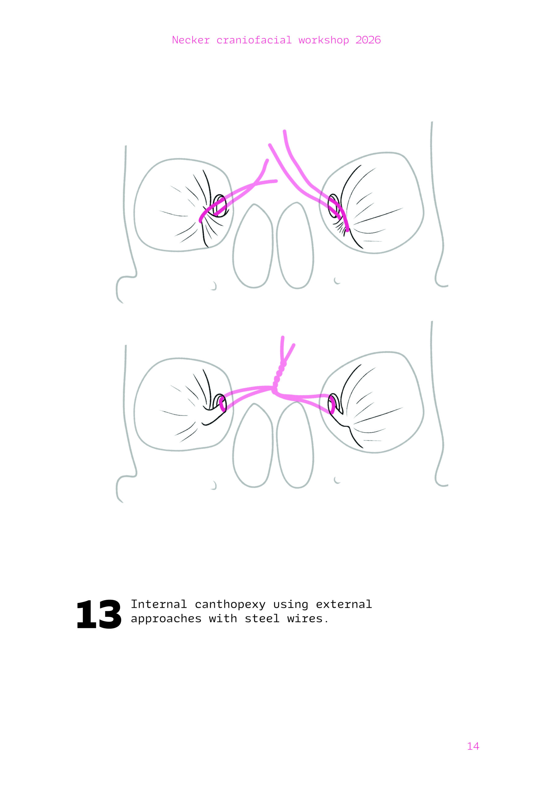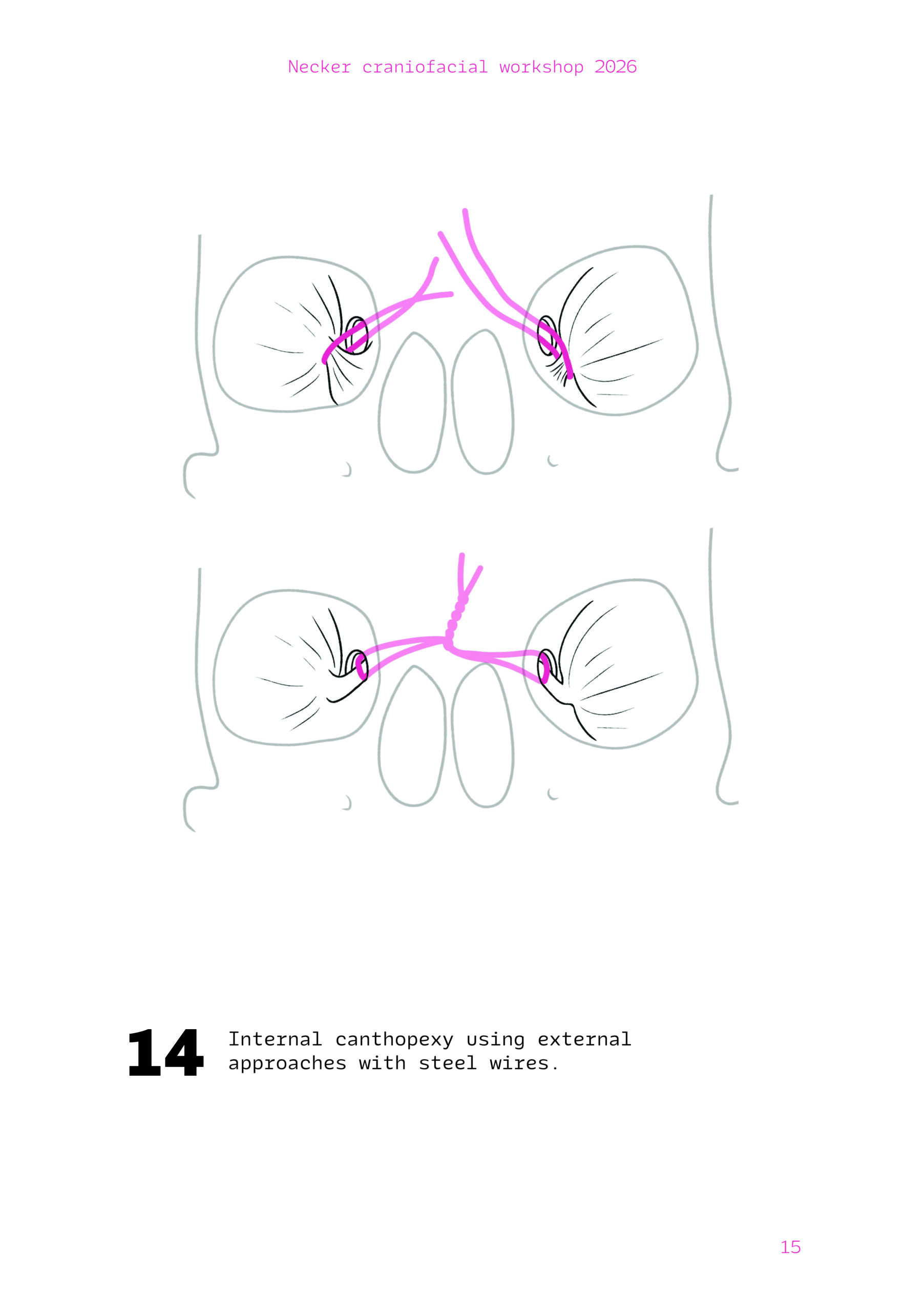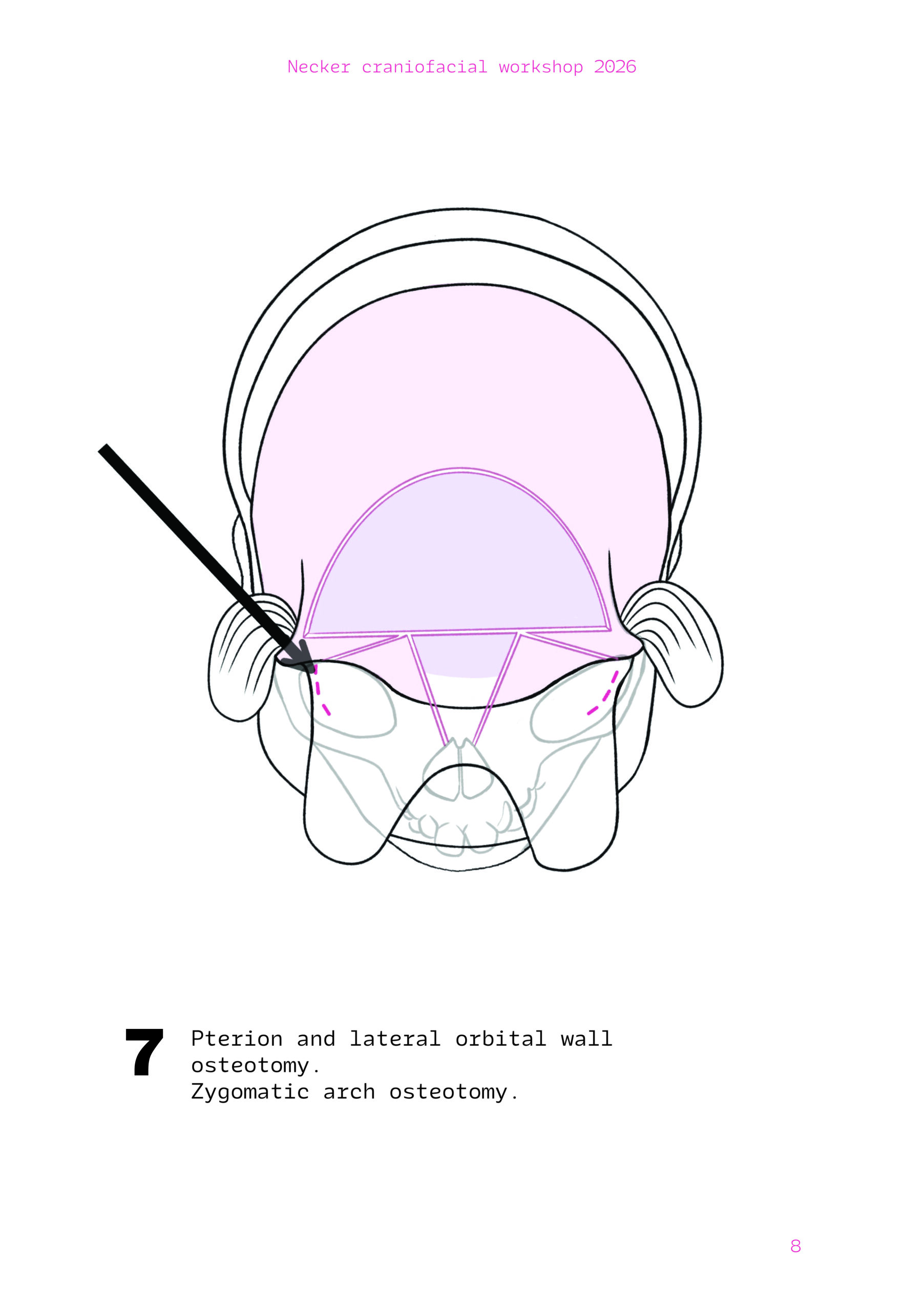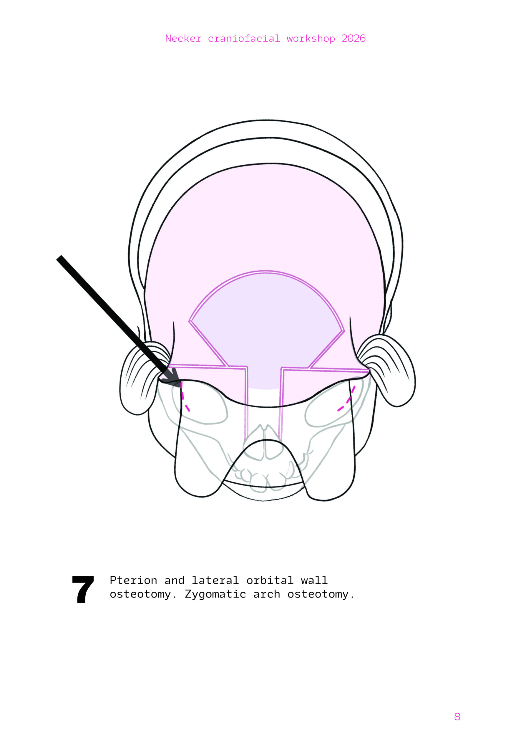 Dans un langage visuel clair et schématique, chaque séquence opératoire est décomposée pour faciliter la lecture des ostéotomies, des mobilisations osseuses et des corrections orbitales.